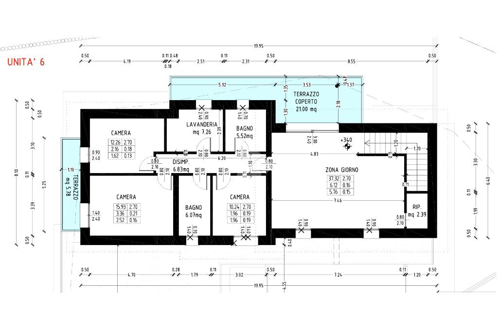 UNITA' 6 : appartamento piano primo in bifamiliare con ingresso indipendente, giardino esclusivo e terrazzo abitabile, è composto da: ingresso, luminosa zona living open space, tre camere da letto di cui due matrimoniali, due bagni ed una lavanderia. al piano terra garage e posto auto.