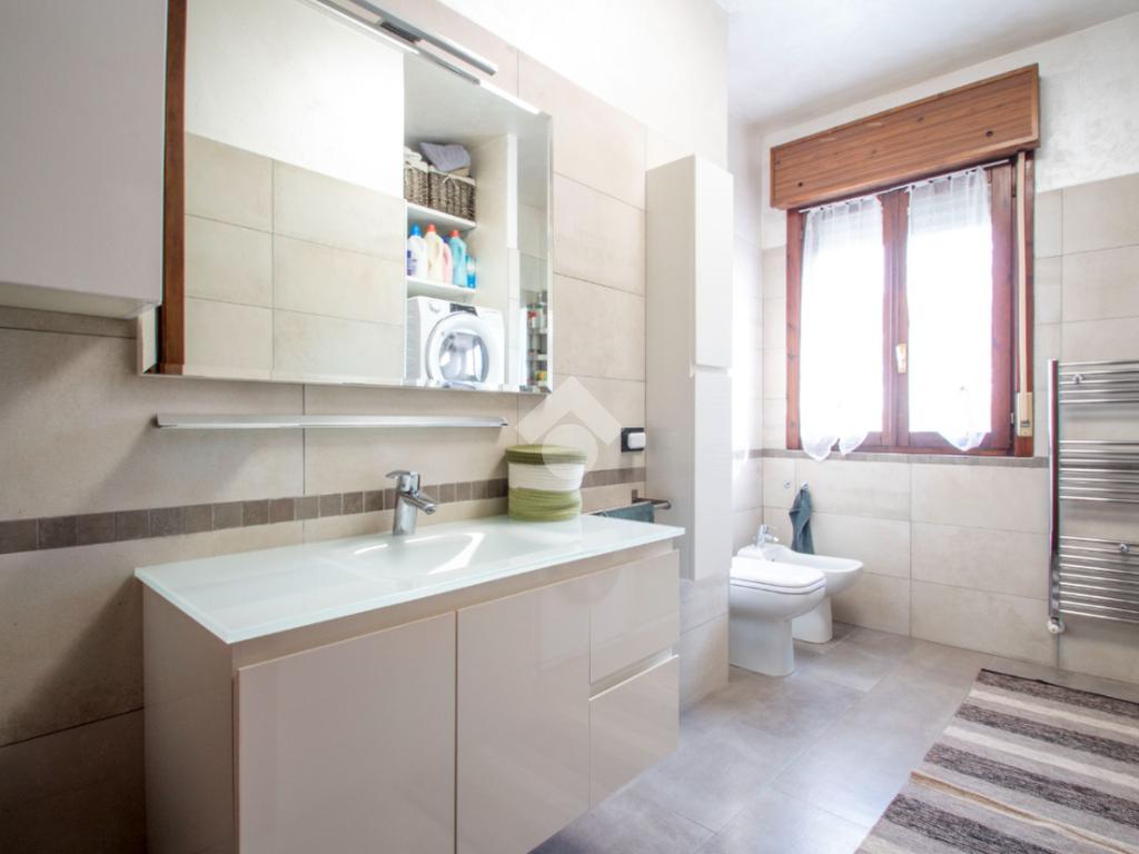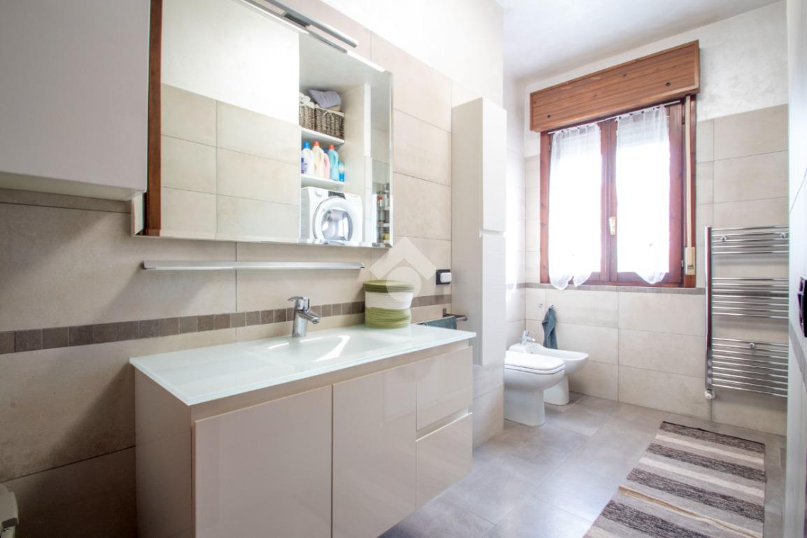 L'unità immobiliare è composta da: ingresso, zona living open space, un'elegante porta in vetro santinato separa la zona notte dove sono presenti tre camere da letto di ottime dimensioni e un bagno molto spazioso. L'abitazione è stata ristrutturata completamente, la caldaia a condensazione è stata sostituita lo scorso anno. Al piano seminterrato è presente un garage doppio in larghezza; l'appartamento è dotato di un orto di proprietà esclusiva.