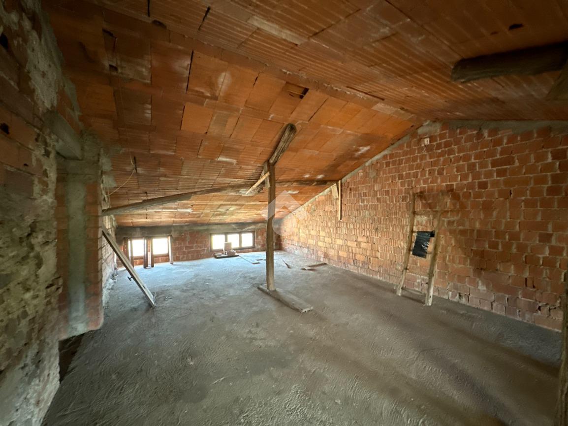L'abitazione è composta da: ingresso, soggiorno, cucina abitabile, lavanderia, cantina e bagno finestrato al piano terra; al piano primo sono presenti quattro camere da letto, bagno finestrato ed un balcone che si affaccia sull'ingresso; al secondo piano è presente una soffitta molto ampia.