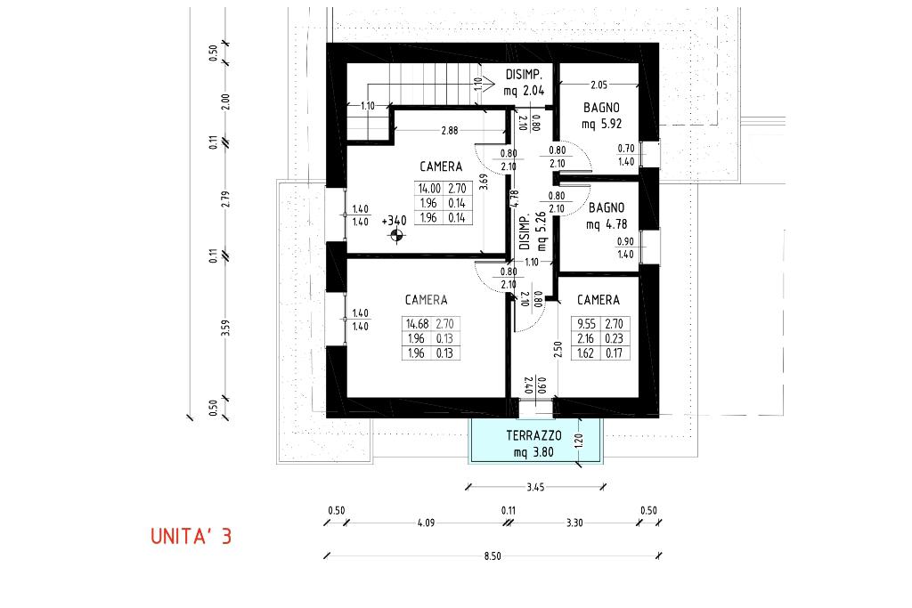 UNITA' 3 : porzione di bifamiliare disposta su due piani con garage doppio affiancato. L'abitazione è composta da: ingresso, luminosa e ampia zona living con uscita sul giardino di proprietà, lavanderia e bagno finestrato al piano terra, portico esclusivo; al piano primo sono presenti tre camere da letto di cui due matrimoniali e due bagni finestrati.