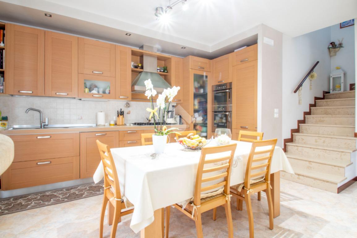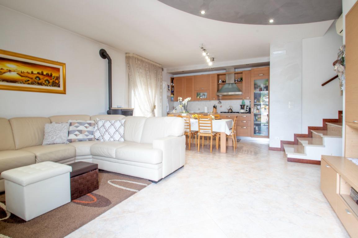 L'unità immobiliare è composta da: ingresso zona living open space di ottime metrature che affaccia sul giardino, molto curato, di proprietà esclusiva; sempre al piano terra è presente un bagno completo di servizio alla zona giorno dotato di finestra; al primo livello sono presenti tre camere da letto ed un bagno anch'esso finestrato. Al piano interrato direttamente comunicante con l'abitazione troviamo un garage molto ampio di otlre 40 mq.