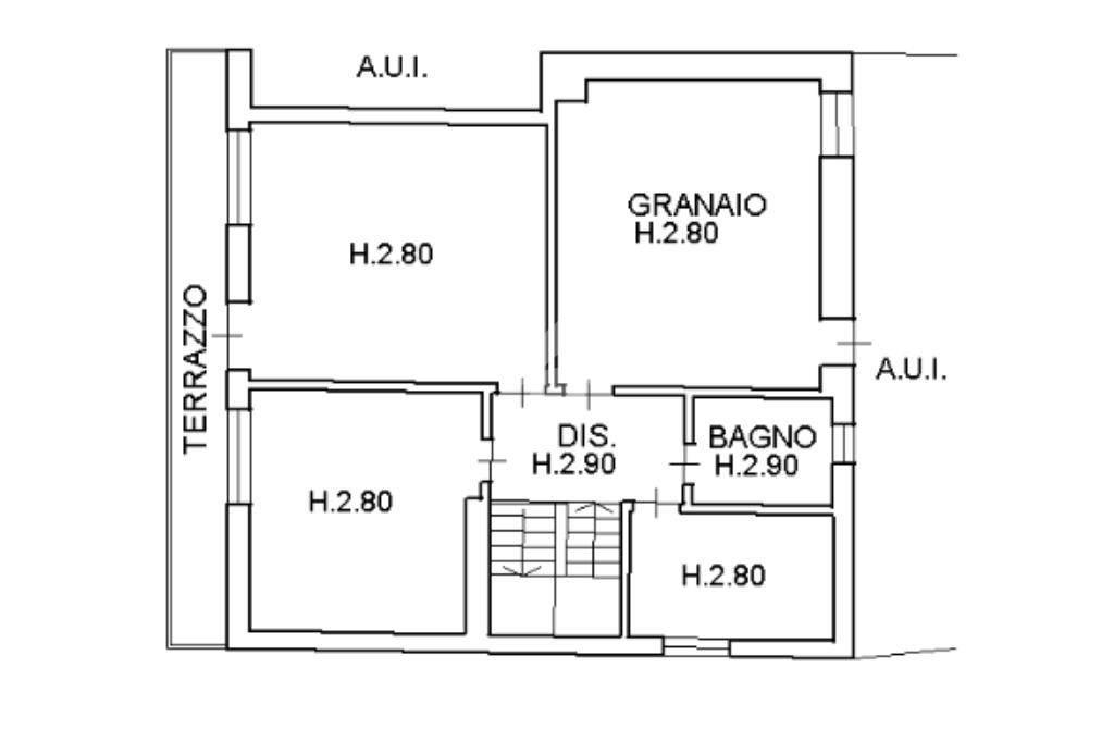 L'abitazione è disposta su due livelli, è composta da: ingresso, cucina abitabile, soggiorno-salotto, un bagno al piano terra; al piano superiore sono presenti quattro camere matrimoniali, un bagno finestrato e uno studio. Sul fronte dell'abitazione è presente un grande giardino di proprietà esclusiva di circa 700 mq. Sulla parte posteriore al fabbricato è presente un annesso oggi adibito a ricovero attrezzi che potrebbe diventare, una volta ristrutturato, un grande garage o più in generale uno spazio multifunzionale.